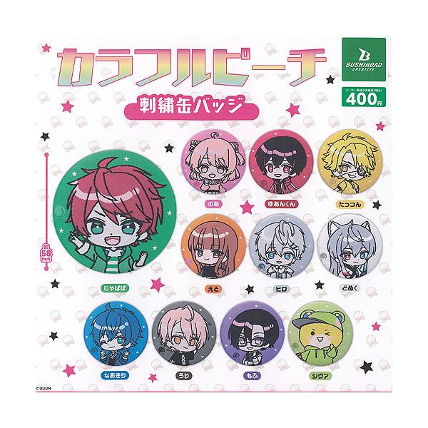 カラフルピーチトレーディング缶バッジ 400円(税込440円) | オリジナルのジャージ姿の描き下ろしデザイン ・商品サイズ:直径約5.6㎝ ・全11種(種類は選べません) |
